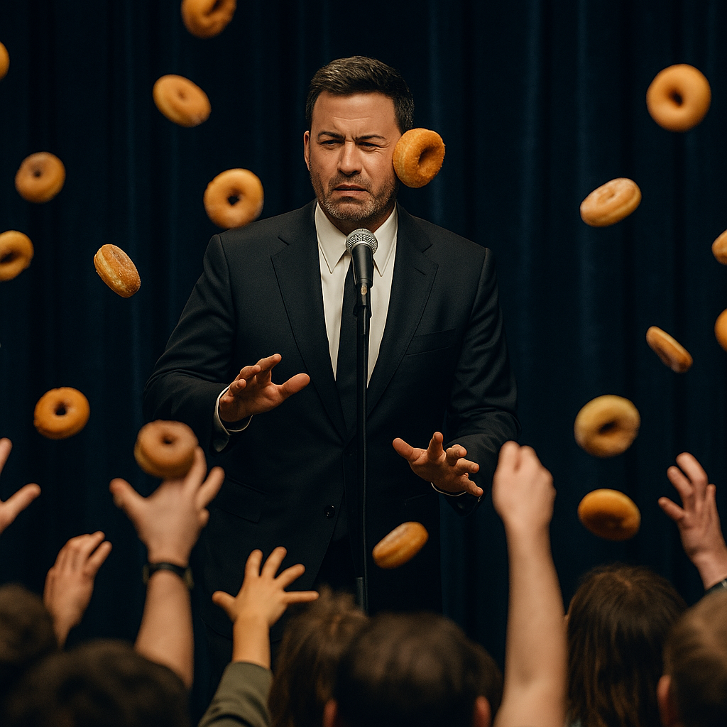 Jimmy Kimmel quietly hid donut in his shoe during his set.